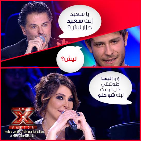 دخوله على خشبة مسرح The X Factor، أبدت إليسا إعجابها بإطلالته، ووجهت